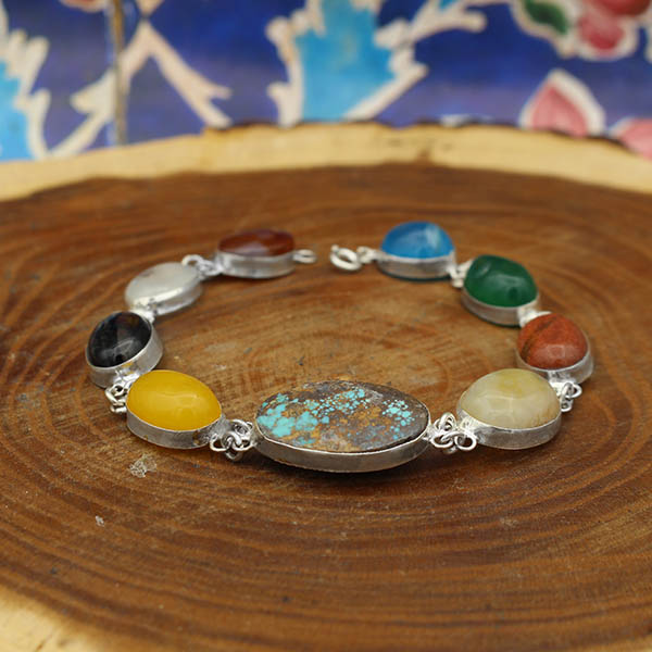 از نقره برای ساخت انگشتر چند نگین و همچنین گردنبند چند سنگ (معروفترین مدل آن گردنبند هفت چاکرا میباشد) و همچنین ساخت دستبند چند سنگ به وفور استفاده میشود. نقره برای بهبودی و شکل گیری استخوان، فرم دهی و ترمیم پوست تاثیر ویژه ایی می گذارد . این فلز بسیار بیشتر از سایر مواد ضد عفونی تاثیر گزار است و ۶۵۰ میکروب را از بین می برد بدون این که مانند دیگر ضد عفونی کننده ها عوارض بعدی بر جای خواهد گذاشت. ذکر شده است که لا تختموا بغیر الفضه فَانَّ رسول الله (ص) قال :” ما طهر الله یداً فیها خاتم حدید" به این معنی که "جز انگشتر نقره به دست نکنید زیرا رسول خدا (ص) فرمودند خداوند پاک نکند دستی را که در آن انگشتری از جنس آهن است." لذا در زمانی که جواهرات نقره را به همراه دارید کمک می کنند که انرژی بیشتری انباشته شود . همچنین به نظر می رسد نقره به اجتناب از تمایل های کسالت آور کمک می کند و در نتیجه استفاده از نقره ممکن است شما احساس تازگی و نیرومندی کنید نقره به شما کمک می کند که افکار خود را متمرکز کنید . همان طور که شما ممکن است قبلا خوانده باشید نقره از طریق پوست جذب می شود و اثر تسکین درد دارد، به همین دلیل دستبندهای نقره خیلی محبوب است .