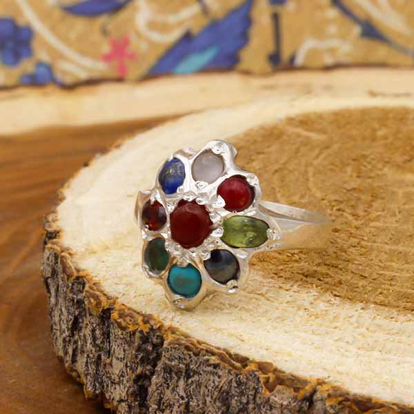 انگشتر چند سنگ نقره زنانه دست ساز طرح شریفا + حرز امام جواد (ع)