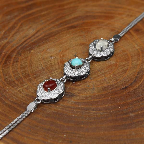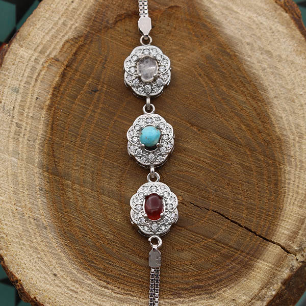 دستبند چند سنگ نقره زنانه طرح ثریا
