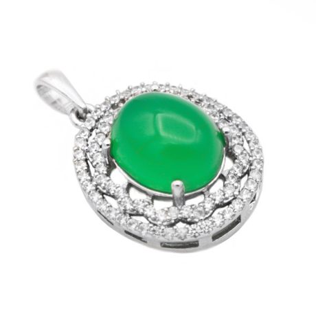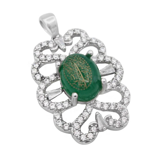 گردنبند عقیق سبز نقره زنانه طرح شاپرک + حکاکی آیه من یتق الله