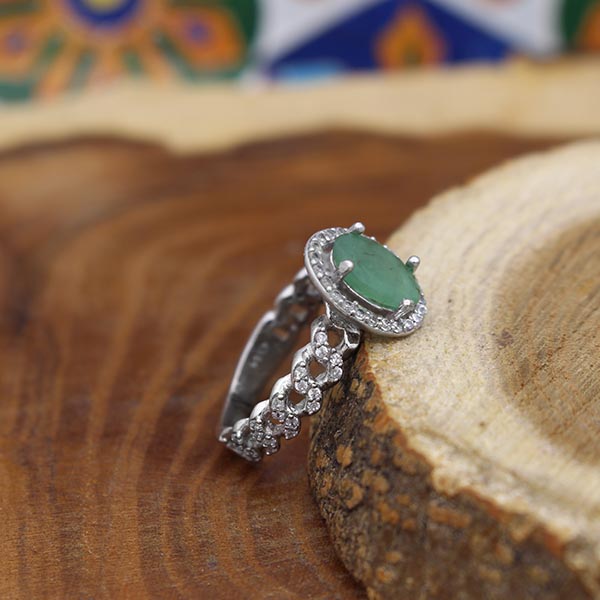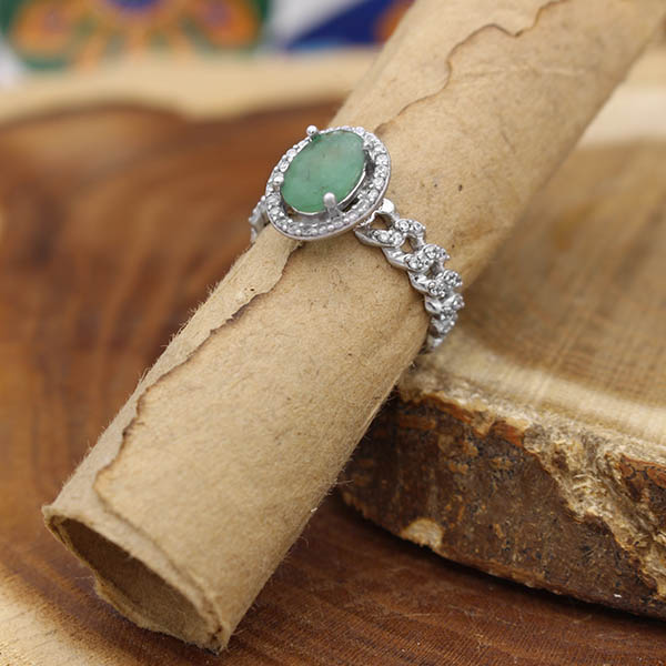 انگشتر زمرد الماس تراش نقره زنانه طرح شقایق