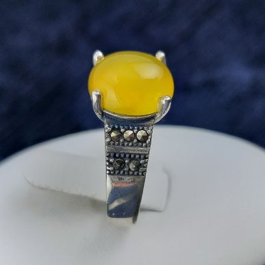انگشتر زنانه نقره طرح مهناز از یک فریم ظریف و شیک بهره می برد. در این انگشتر از نگین‌های تیره رنگ و جذاب مارکازیت استفاده شده است. انگشتر زنانه مهناز دارای نگینی با اندازه متوسط و فریمی منحصر به فرد است. این فریم از جنس نقره با عیار ۹۲۵ ساخته و آبکاری شده است. انگشتر نقره طرح مهناز می تواند متناسب با هر انگشتی تغییر اندازه پیدا کند. نگین زرد رنگ انگشتر طرح مهناز از جنس عقیق شرف الشمس است که دارای خواص و برکات فراوانی است (حکاکی ذکر پر فضیلت شرف شمس در پشت نگین عقیق زرد با آداب خاص و در زمان مقرر).