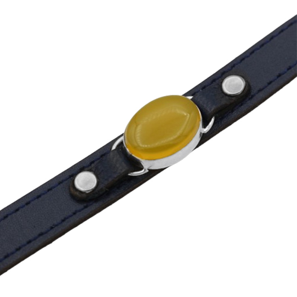 دستبند شرف الشمس نقره چرم سرمه ای بلند کلاسیک طرح کمیل + حکاکی