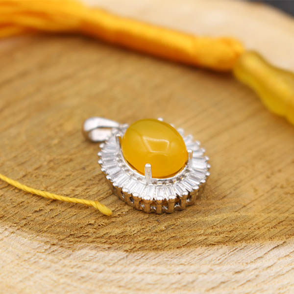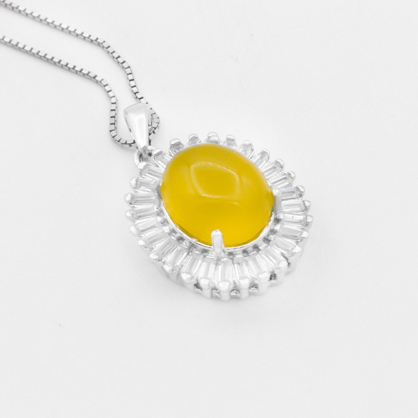 گردنبند شرف الشمس زنانه طرح مهوین از نقره ۹۲۵ عیار ساخته شده و فریم گردنبند نقش بسیاری در افزایش جذابیت محصول دارد و توسط قالب های به صورت دقیق و بدون ایراد مانند خورشید برش خورده و کاملا متقارن است. استفاده از نگین های ریز اتمی دور تا دور محصول به صورت دایرهای باعث افزایش جذابیت و درخشش گردنبند شده است. این محصول دارای آبکاری رادیوم نیز میباشد که مانع تغییر رنگ و کدر شدن محصول میگردد. جنس نگین عقیق زرد اصل و معدنی بوده که دارای خواص معنوی بسیاری میباشد. (حکاکی ذکر پر فضیلت شرف الشمس در پشت نگین زرد رنگ با آداب خاص و در زمان خاص) توجه داشته باشید که قیمت زنجیر در این محصول محاسبه نشده است.