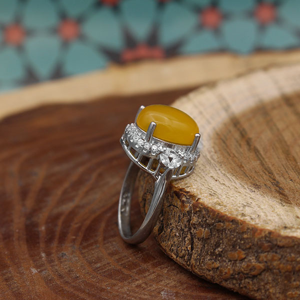 این انگشتر شرف الشمس، یکی از خاصترین مدلهای نقره زنانه است که هم از نظر طراحی و هم از نظر خاصیت جایگاه ویژهای دارد. نگین عقیق زرد طبیعی، درخشش فوقالعادهای دارد و با داشتن دعای شرف الشمس، بر ارزش این جواهر افزوده است (حکاکی ذکر پر فضیلت شرف شمس در پشت نگین با آداب معین و در زمان خاص). نقره 925 بهکاررفته در این محصول، مقاومت بالایی داشته و آبکاری طلا سفید، باعث حفظ درخشندگی آن در طول زمان میشود. این انگشتر با طراحی منحصربهفرد و امکان تغییر سایز، انتخابی عالی برای بانوانی است که به دنبال زیورآلاتی خاص، شیک و پر از برکت هستند.