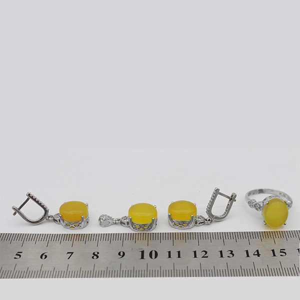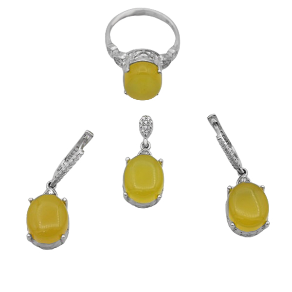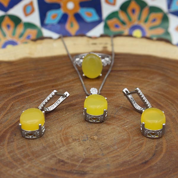 نیمست شرف الشمس زنانه طرح مروارید، یکی از سادهترین نمونههای نیمست شرف الشمس در سایت شرف آنلاین است. به دلیل تعداد کم نگینهای اتمی این نیمست، میتوان این طرح را جزء سادهترین نمونههای ست زنانه معرفی نمود. این نیم ست دارای یک انگشتر، یک گردنبند و دو گوشواره است که همگی از جنس نقره با عیار 925 به همراه آبکاری طلا سفید است. این آبکاری از تغییر رنگ جلوگیری نموده و سبب درخشش نیمست میگردد. همچنین این نیمست دارای چهار عدد نگین عقیق زرد اصلی و معدنی به همراه دعای شرف الشمس است.