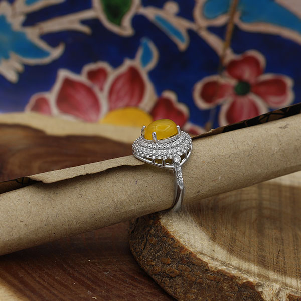 انگشتر شرف الشمس طرح نوشین  یکی از طرح‌هایی است که می‌تواند لوکس بودن را به شما هدیه دهد. اگر به دنبال یک انگشتر زنانه با طراحی لوکس به همراه خواص فراوانی هستید، پیشنهاد ما به شما استفاده از انگشتر شرف الشمس زنانه طرح نوشین است. جنس این انگشتر از نقره با عیار 925 به همراه آبکاری طلا سفید است. آبکاری طلا سفید از کدر شدن رکاب جلوگیری می‌کند. همچنین این انگشتر قابلیت سایز شدن برای هر سایز انگشتی را داراست. سنگ عقیق زرد انگشتر در کنار دعای شرف الشمس می‌تواند همواره در زندگی شما خیر و برکت وارد کنید.