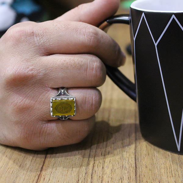 انگشتر شرف الشمس نقره مردانه طرح رهبری + حکاکی حرز امام جواد (ع) و آیت الکرسی + حکاکی شرف الشمس