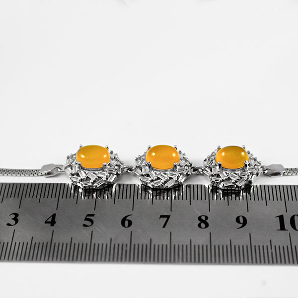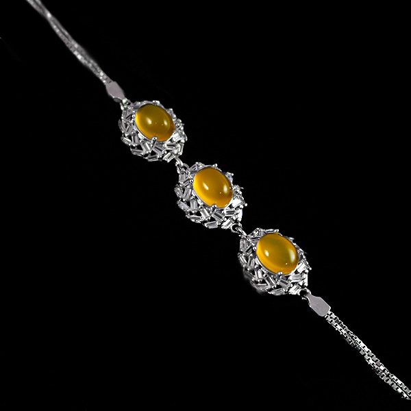 دستبند شرف الشمس طرح سیماران از نقره ۹۲۵ عیار ساخته شده است. این محصول به وسیله رادیوم آبکاری شده و به همین دلیل از سیاه شدن و کدر شدن آن در استفاده طولانی مدت و همینطور ایجاد حساسیت های پوستی جلوگیری میشود و در برابر انواع آسیب های فیزیکی و مواد شیمیایی مقاوم است. نگین این محصول عقیق زرد اصل و معدنی است که رنگ مطلوب و سطح کاملا یکنواخت و صافی دارد و خواص بسیاری برای آن ذکر شده است (حکاکی پر فضیلت دعای شرف الشمس در پشت سنگ و در زمان مقرر با رعایت تمام آداب). فریم این دستبند با نگین های ریز اتمی در دو ردیف تزئین شده و درخشش و جذابیت بسیاری را داراست.