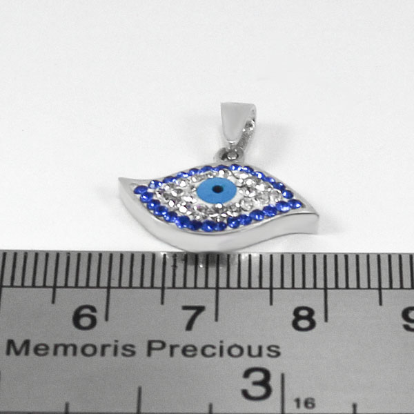 گردنبند نقره دخترانه طرح فانتزی چشم از نقره ۹۲۵ عیار ساخته شده است. این محصول به شکل چشم میباشد و با نگین های ریز اتمی به رنگ های آبی پر رنگ و سفید این محصول را تزئین کردنند و در وسط این گل یک نگین نماد چشم قرار داده شده است. این محصول دارای یک لایه آبکاری رادیوم است که جلا و درخشش نقره را میافزاید و از تیرگی و تغییر رنگ محصول جلوگیری میکند. توجه داشته باشید این محصول بدون زنجیر داخل تصویر برای شما ارسال میگردد.