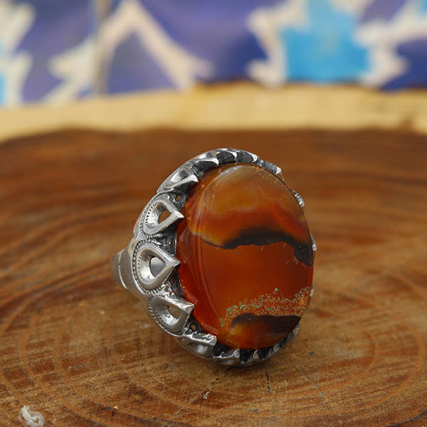 انگشتر عقیق سلیمانی نقره مردانه طرح بیژن