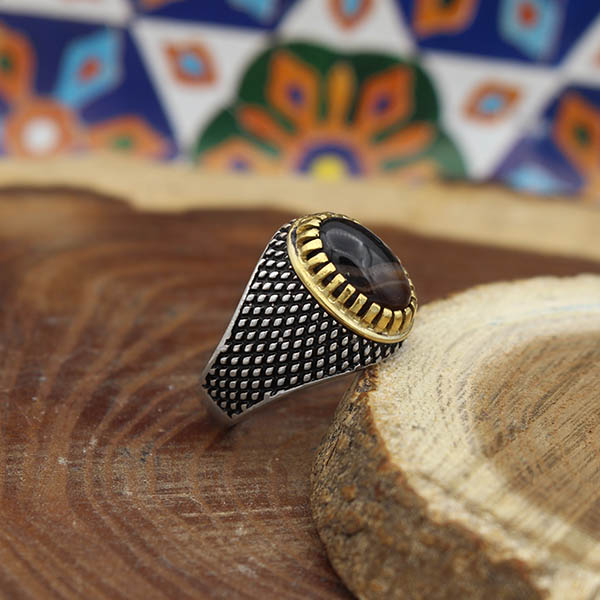 انگشتر عقیق سلیمانی نقره مردانه طرح محمود