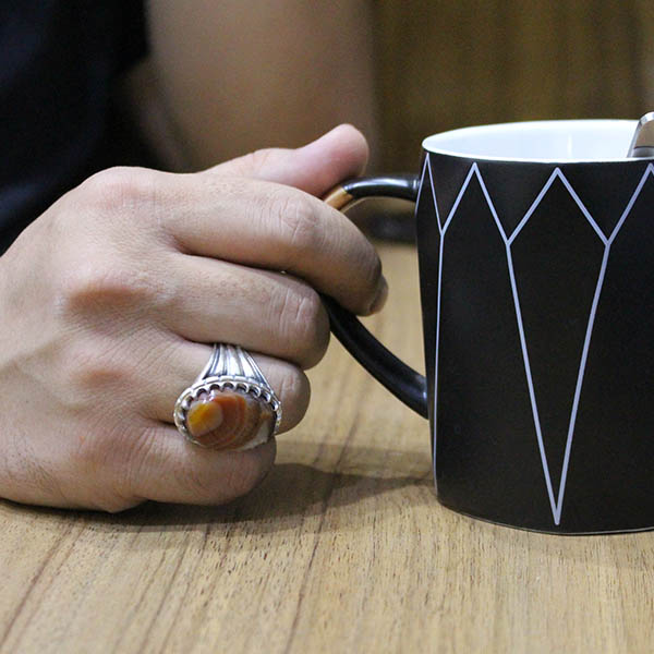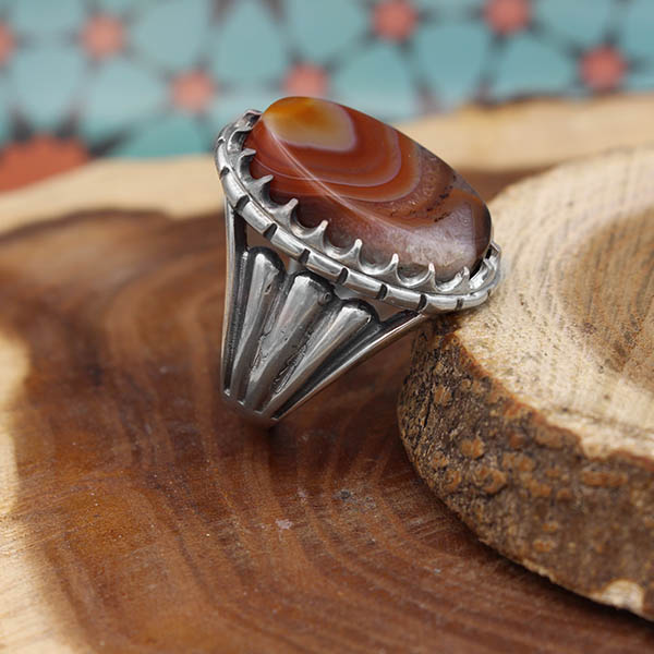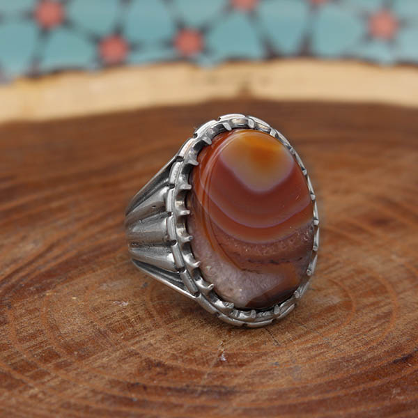انگشتر عقیق سلیمانی نقره مردانه طرح صادق