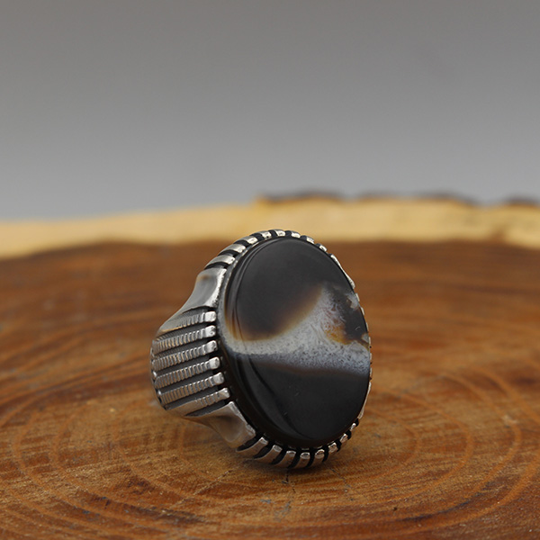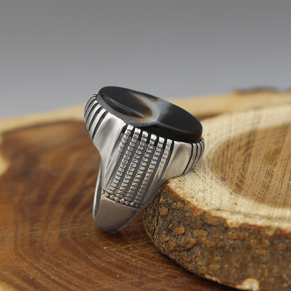 انگشتر عقیق سلیمانی نقره مردانه طرح سینا