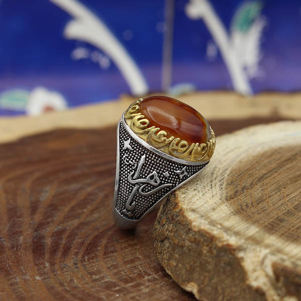 انگشتر عقیق سلیمانی نقره مردانه طرح یازهرا