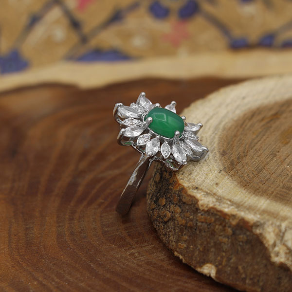 انگشتر عقیق سبز نقره زنانه طرح سمیه