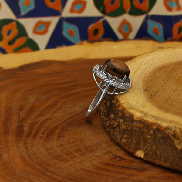 انگشتر عقیق باباقوری نقره زنانه طرح سونیا