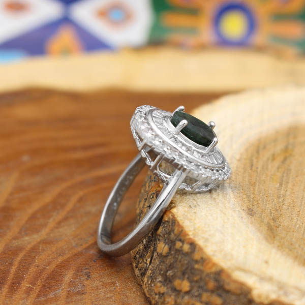 انگشتر زمرد الماس تراش نقره زنانه طرح تارا