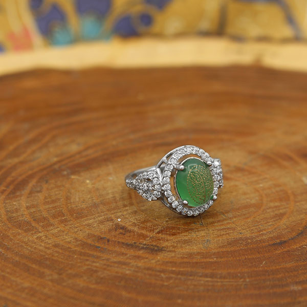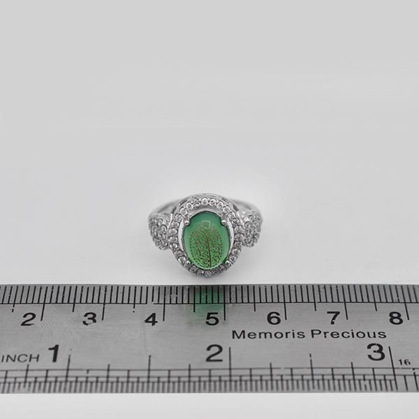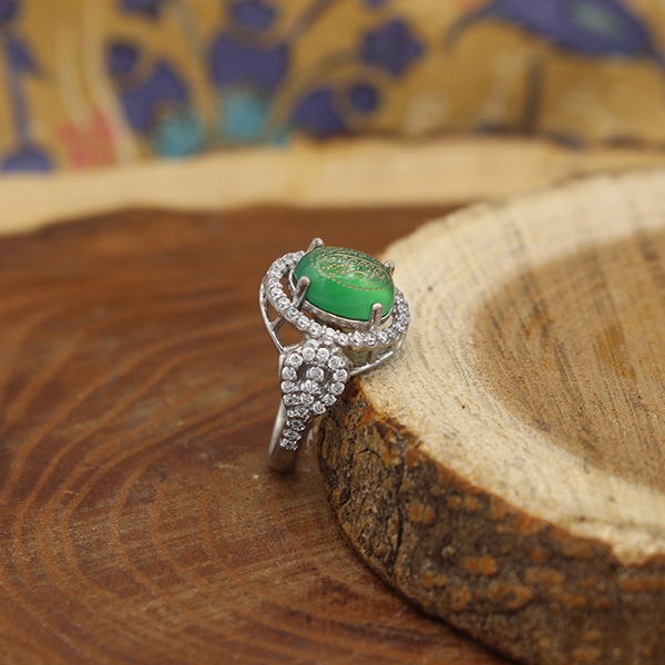 انگشتر عقیق سبز نقره زنانه طرح تیام + حکاکی من یتق الله
