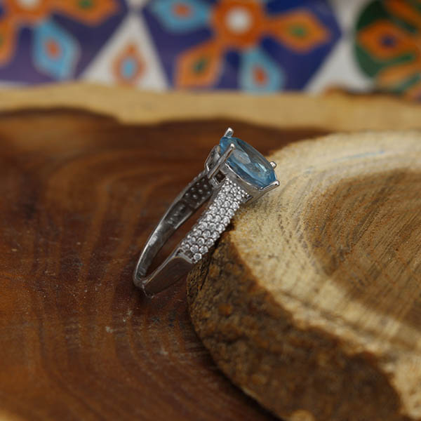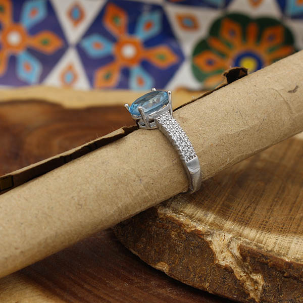 انگشتر توپاز الماس تراش نقره زنانه طرح فریبا