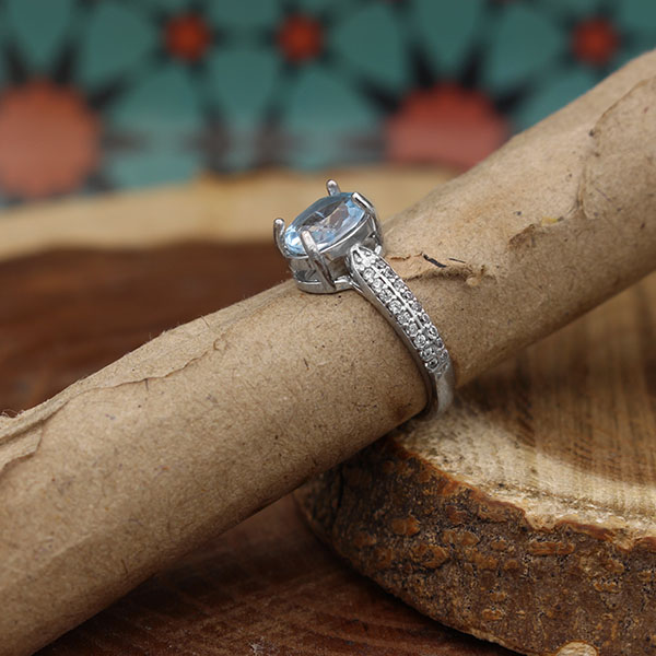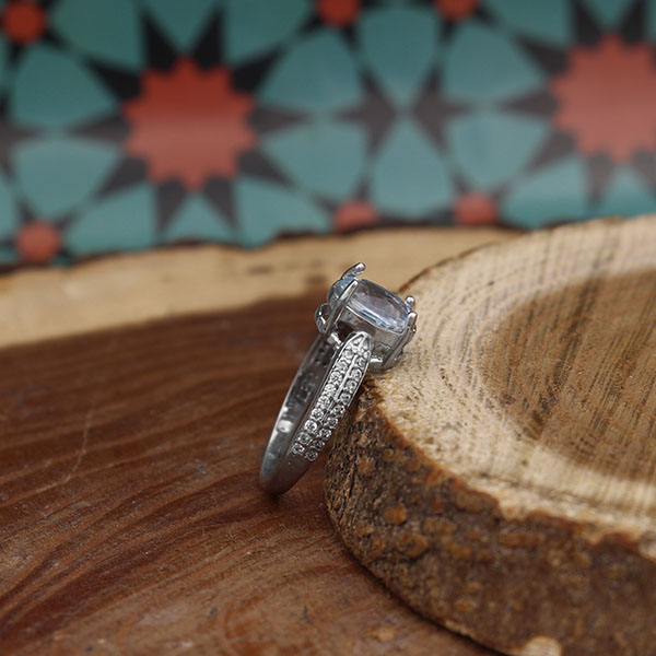 انگشتر توپاز الماس تراش نقره زنانه طرح سایرا