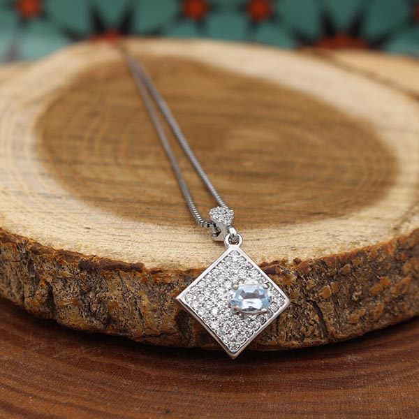 گردنبند توپاز الماس تراش زنانه نقره طرح سیمین