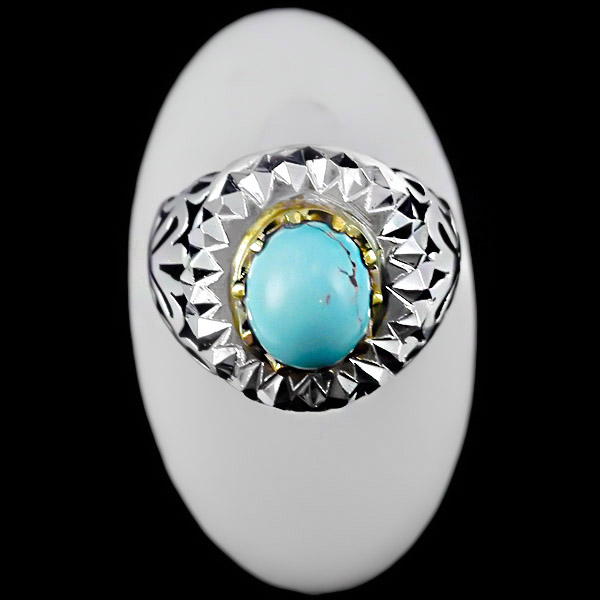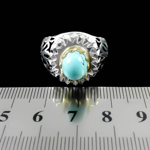 انگشتر فیروزه نیشابوری نقره دست ساز فاخر مردانه طرح دور طلایی فلاح