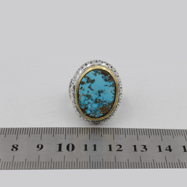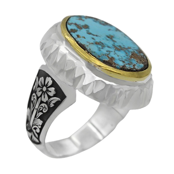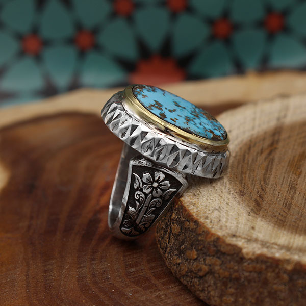 انگشتر فیروزه نیشابوری نقره دست ساز مردانه طرح مالک + حرز امام جواد (ع)