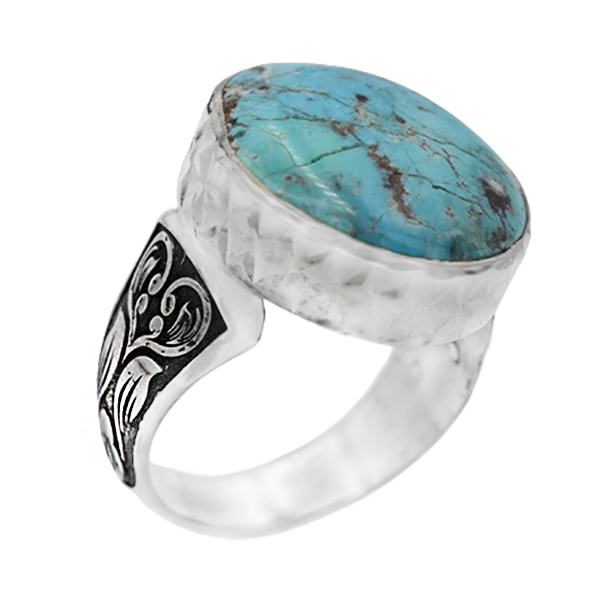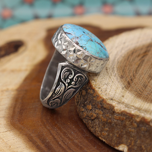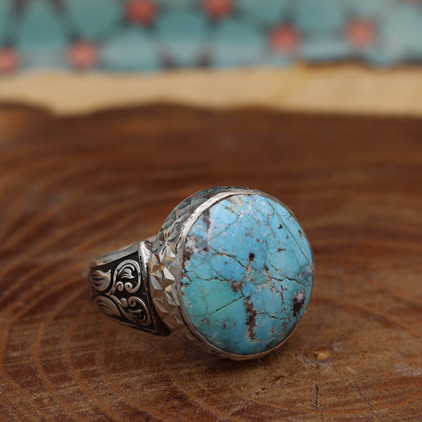 انگشتر فیروزه نیشابوری نقره دست ساز مردانه طرح نیما + حرز امام جواد (ع)