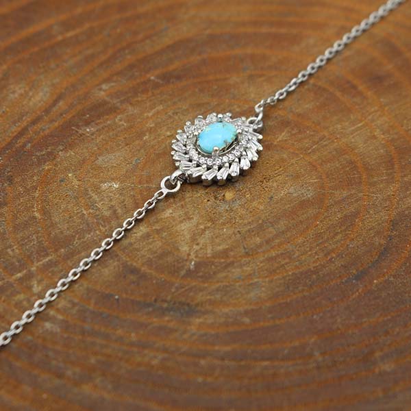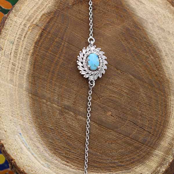 دستبند فیروزه نیشابوری نقره زنانه طرح الماس