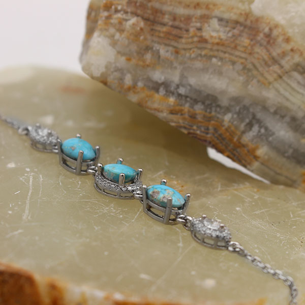 دستبند فیروزه نیشابوری نقره زنانه طرح عروس
