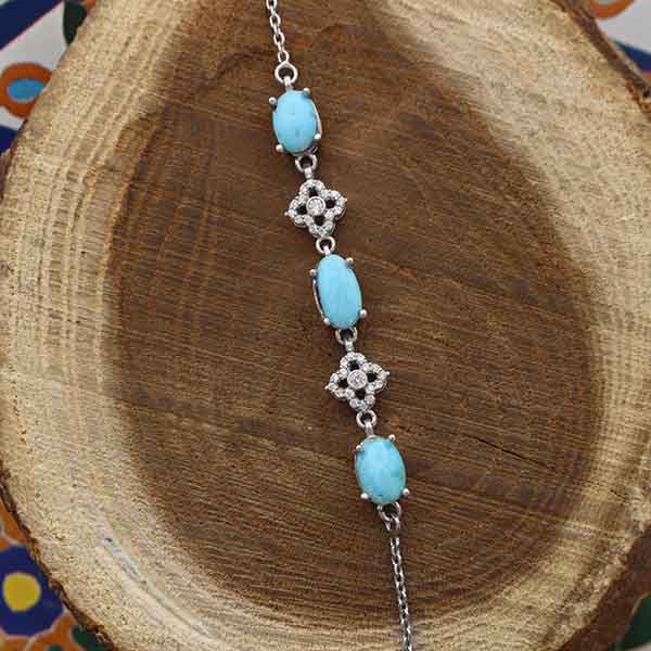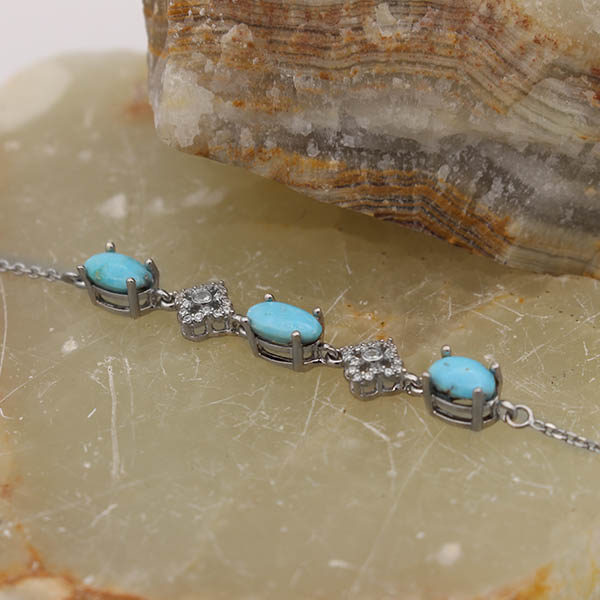 دستبند فیروزه نیشابوری نقره زنانه طرح دریا
