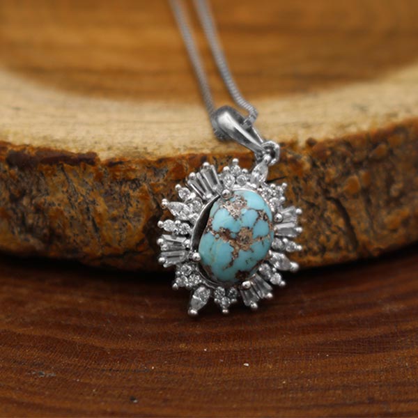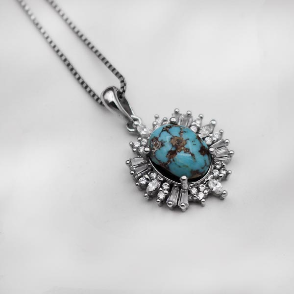 گردنبند فیروزه نیشابوری نقره زنانه طرح غزاله