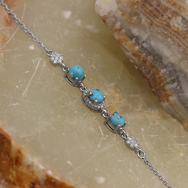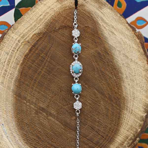 دستبند فیروزه نیشابوری نقره زنانه طرح جواهر