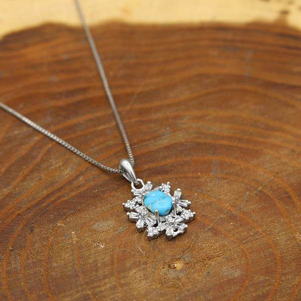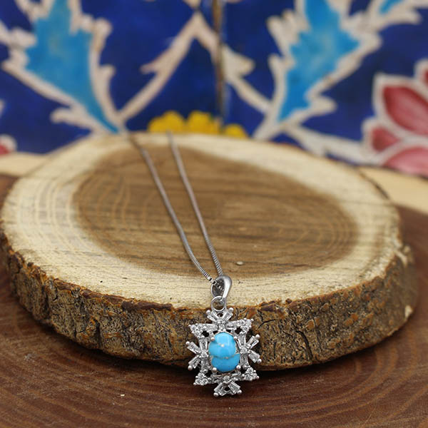 گردنبند فیروزه نیشابوری نقره زنانه طرح خوشدل