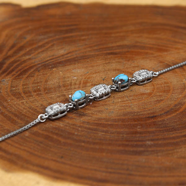 دستبند فیروزه نیشابوری نقره زنانه طرح کوثر