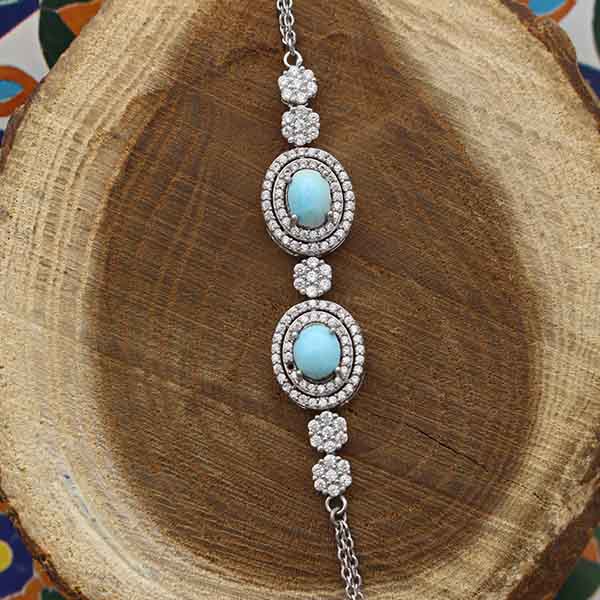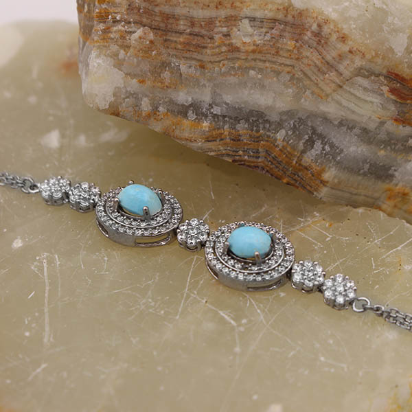 دستبند فیروزه نیشابوری نقره زنانه طرح مهربان