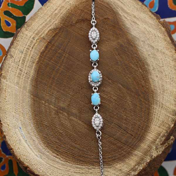 دستبند فیروزه نیشابوری نقره زنانه مهربانو