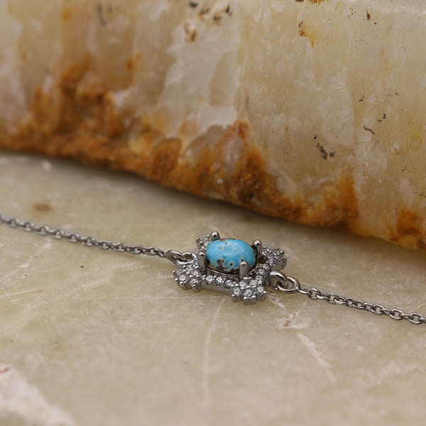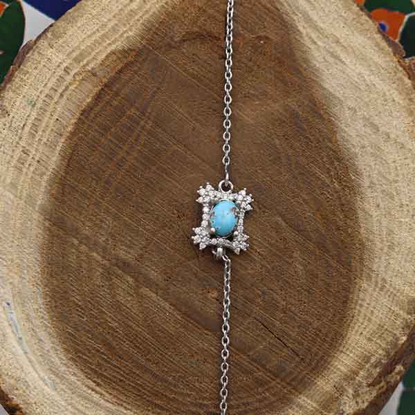 دستبند فیروزه نیشابوری نقره زنانه طرح پونه
