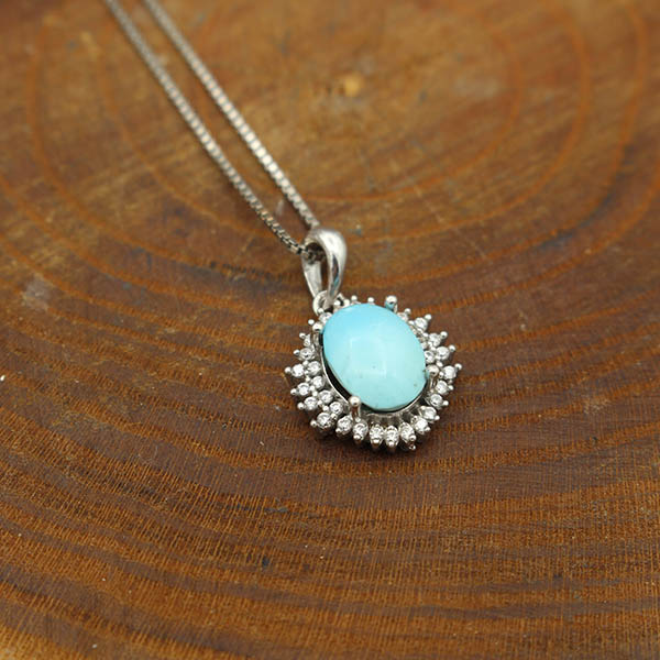 گردنبند فیروزه نیشابوری نقره زنانه طرح ترانه