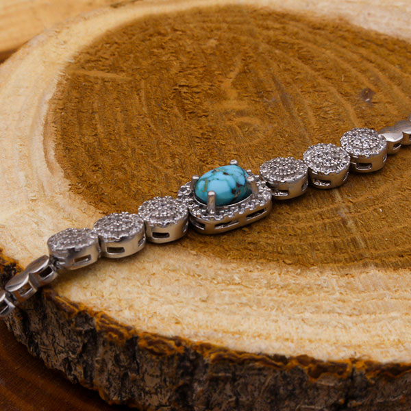 دستبند فیروزه نیشابوری نقره زنانه طرح زری