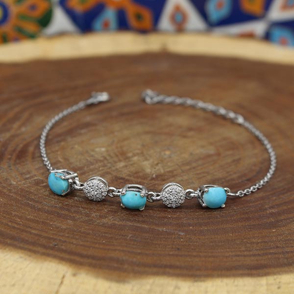 دستبند فیروزه نیشابوری نقره زنانه طرح زمرد