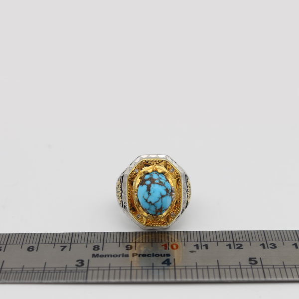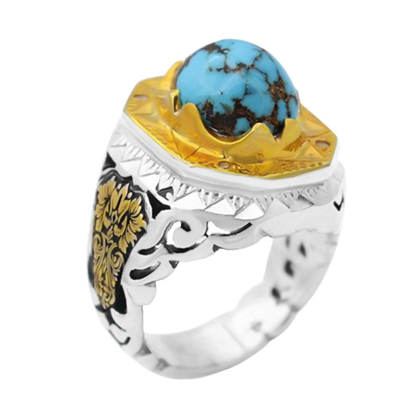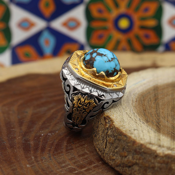 انگشتر فیروزه نیشابوری نقره مردانه دست ساز طرح افرا