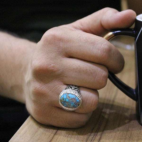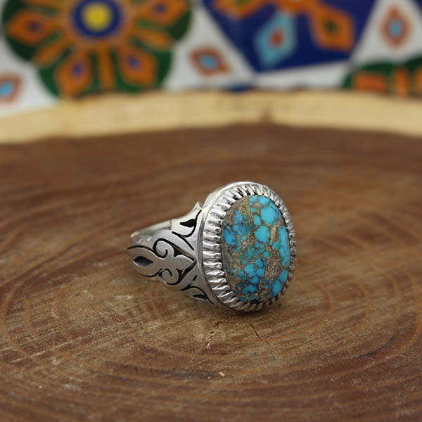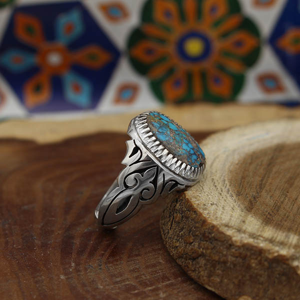 انگشتر فیروزه نیشابوری نقره مردانه دست ساز طرح آرش