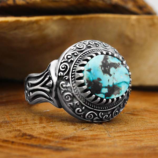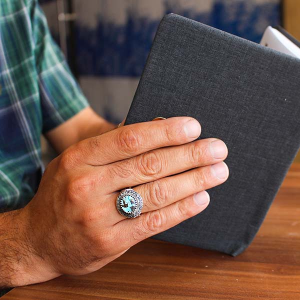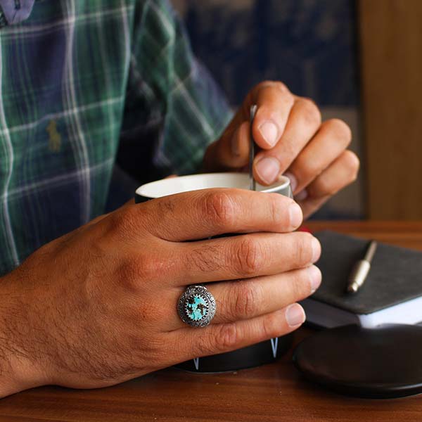 انگشتر فیروزه نیشابوری نقره مردانه طرح عطار