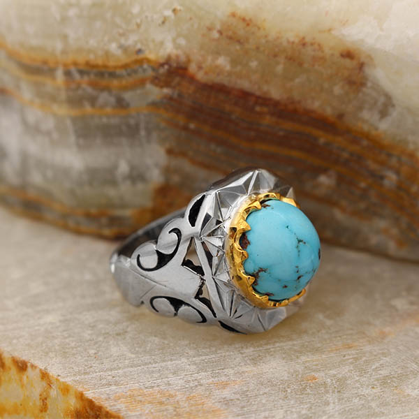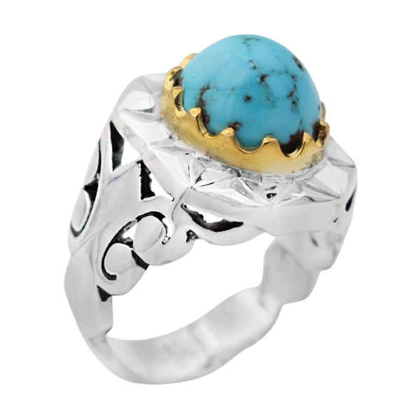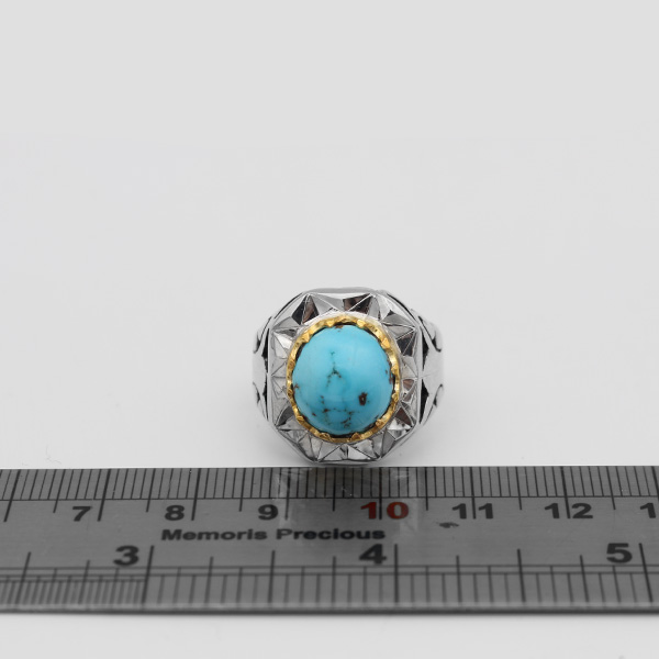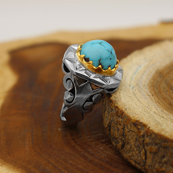 انگشتر فیروزه نیشابوری نقره مردانه دست ساز طرح برزو