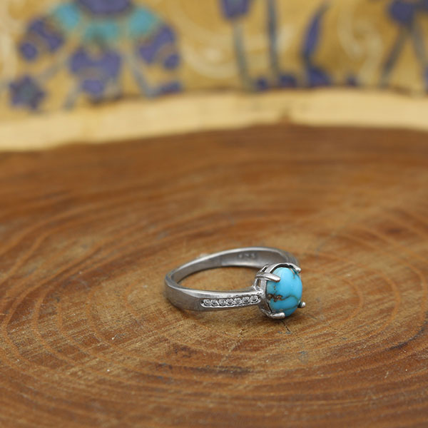 انگشتر فیروزه نیشابوری نقره زنانه طرح بشری