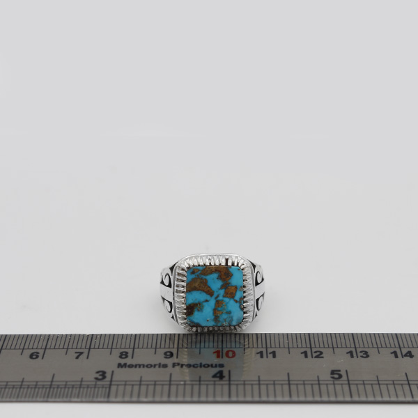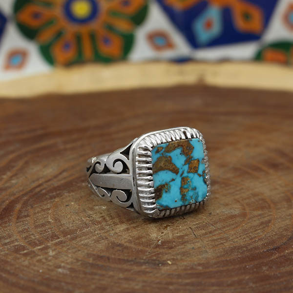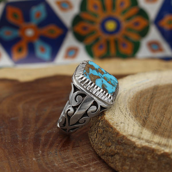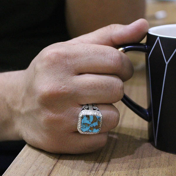 انگشتر فیروزه نیشابوری نقره مردانه دست ساز طرح چنگیز
