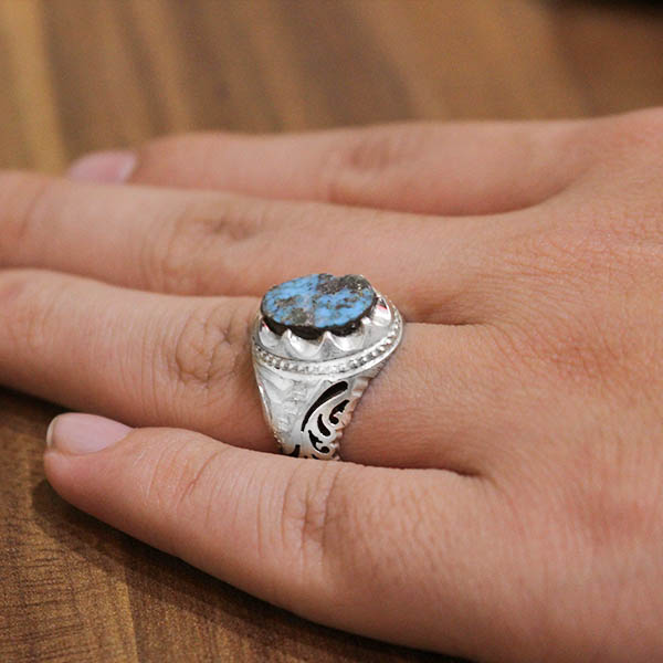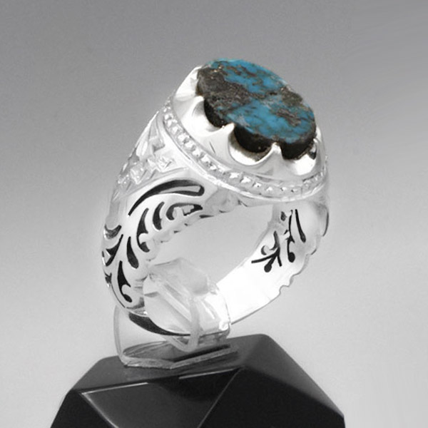 انگشتر فیروزه نیشابوری نقره دست ساز مردانه طرح فاخر عرفان