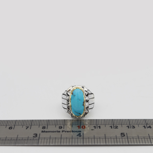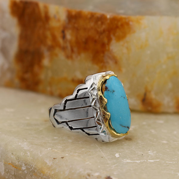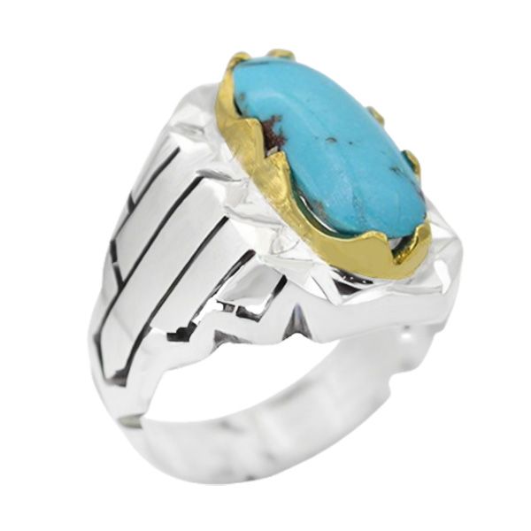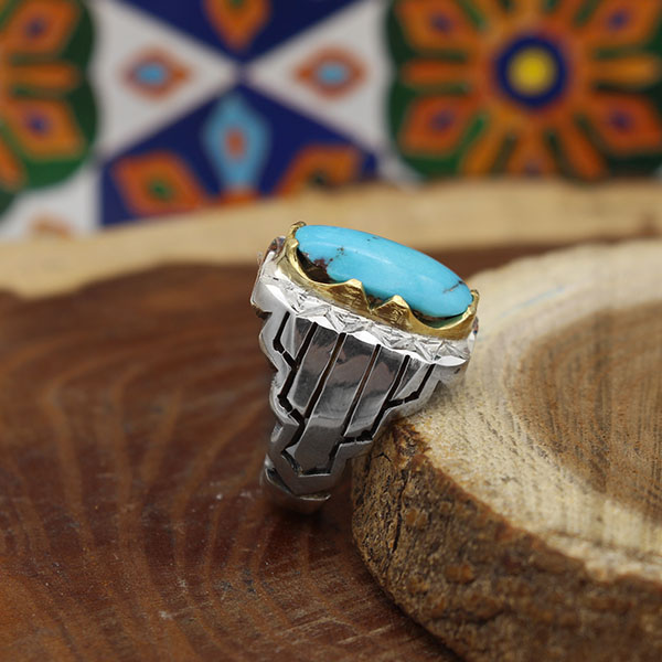 انگشتر فیروزه نیشابوری نقره مردانه دست ساز طرح فرخ